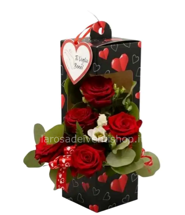| Everyday box V12 - con 5 rose rosse Cod. 45439 | € 34,90 | Quantità : | |